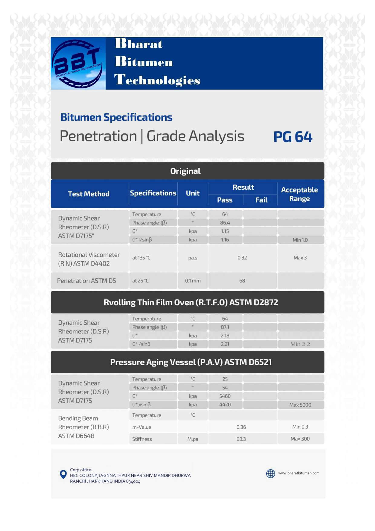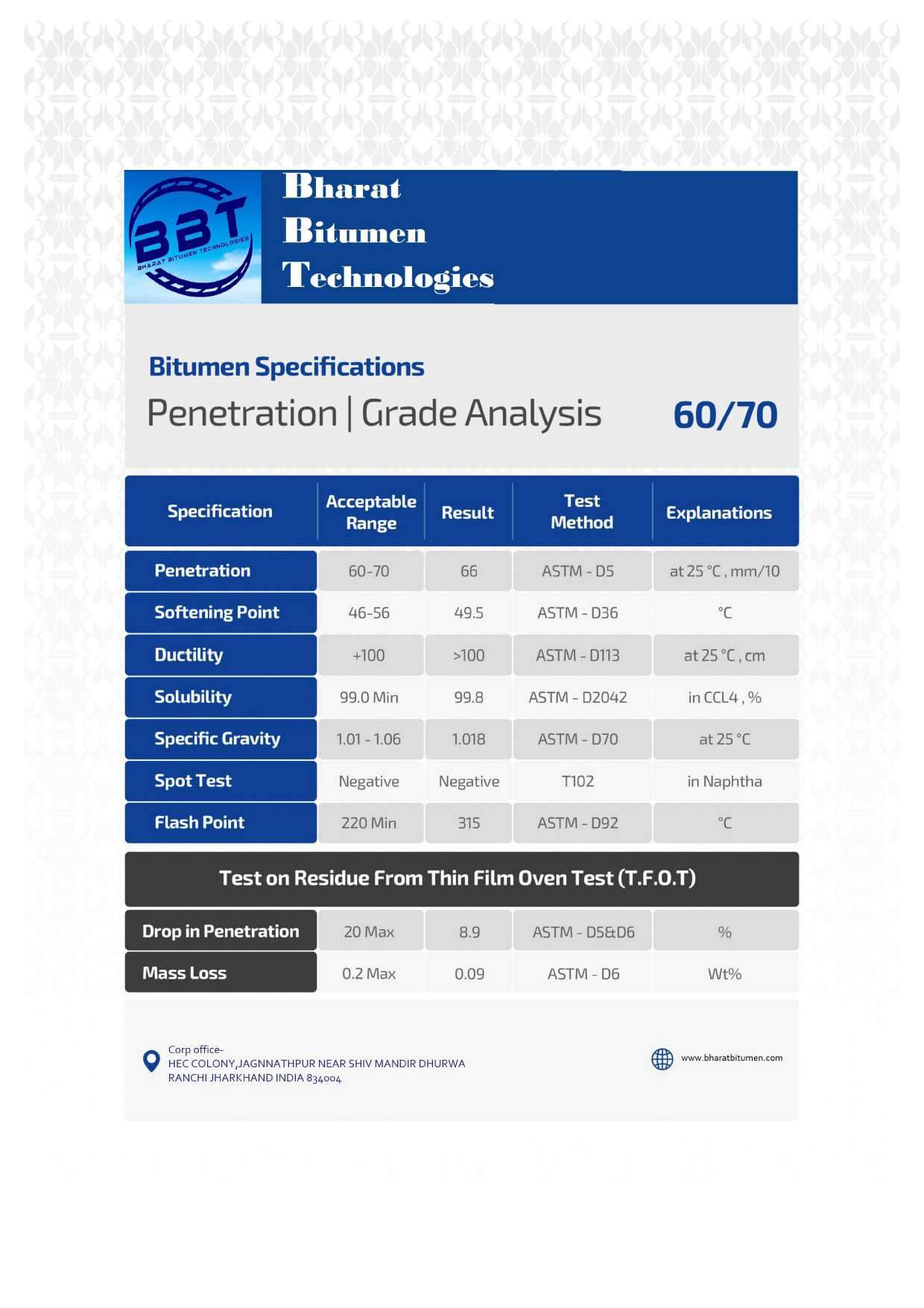 At Bharat Bitumen, quality is our foremost priority. We source bitumen from reputable refineries and manufacturers, ensuring that our products meet stringent industry standards. Our commitment to quality control guarantees that you receive bitumen of the highest grade, whether for road construction, roofing, or industrial applications.
